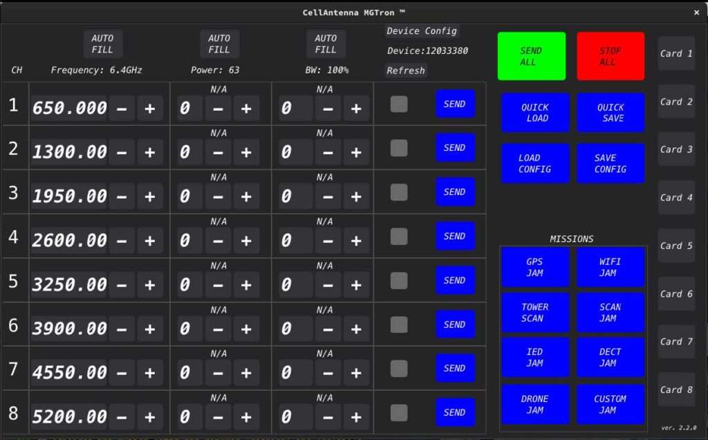 The MGTRON™ can be used for jamming platform for boardrooms and close range operations, including hidden microphone and camera device. Note: subject to lawful use only, and/or US Export requirements.
