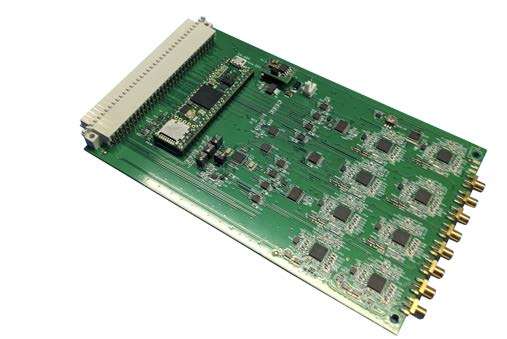 Multiple cards can be stacked together and controlled as a signal source matrix of 8 x n channels . Each channel can provide up to 6 dBm of output power or be combined with our vehicle or back pack amplification systems for larger power levels.